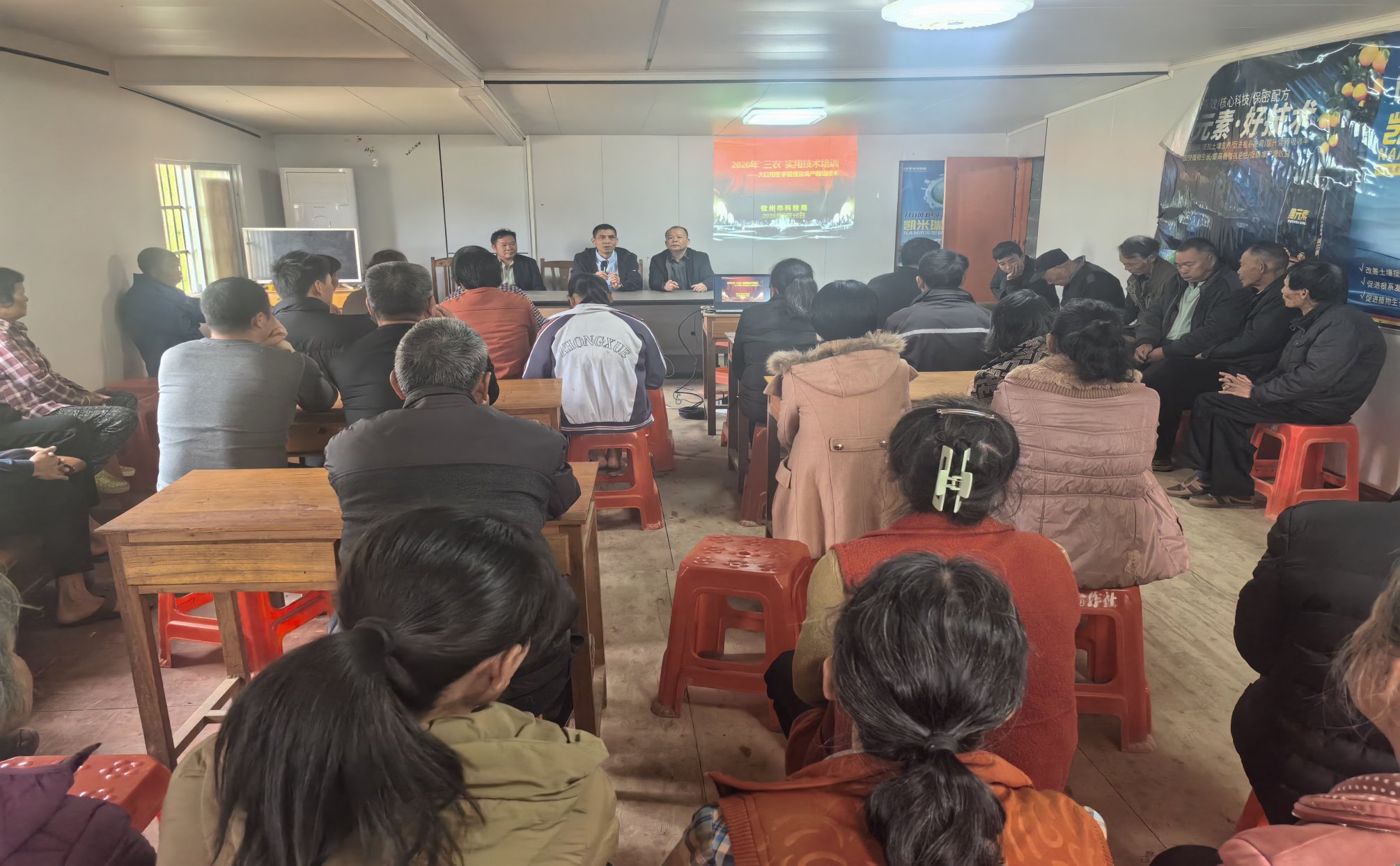 为助力种植户掌握大红柑冬季管理关键技术,夯实来年高产基础,推动大红柑产业提质增效。1月15日,钦州市科技局,钦州市星火计划管理中心在浦北县江城街道公家村举办大红柑冬季管理及高产栽培技术培训班,吸引周边80 余名种植户、合作社骨干参与培训。