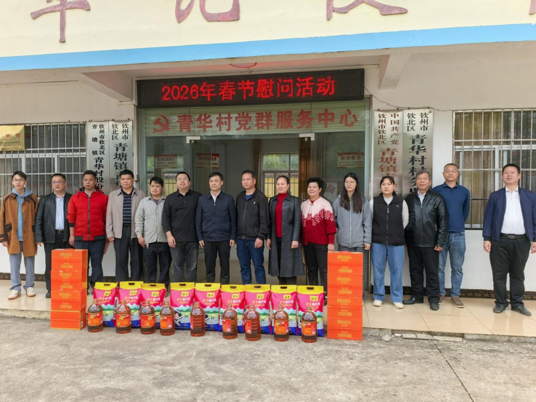 2026年春节将至,市人大常委会联合市科技局、市科学技术情报研究所、交通银行钦州分行等后盾单位到钦北区青塘镇青华村开展2026年春节走访慰问活动,走访慰问脱贫户、监测户、生活困难党员、老党员、村干部和驻村工作队员。