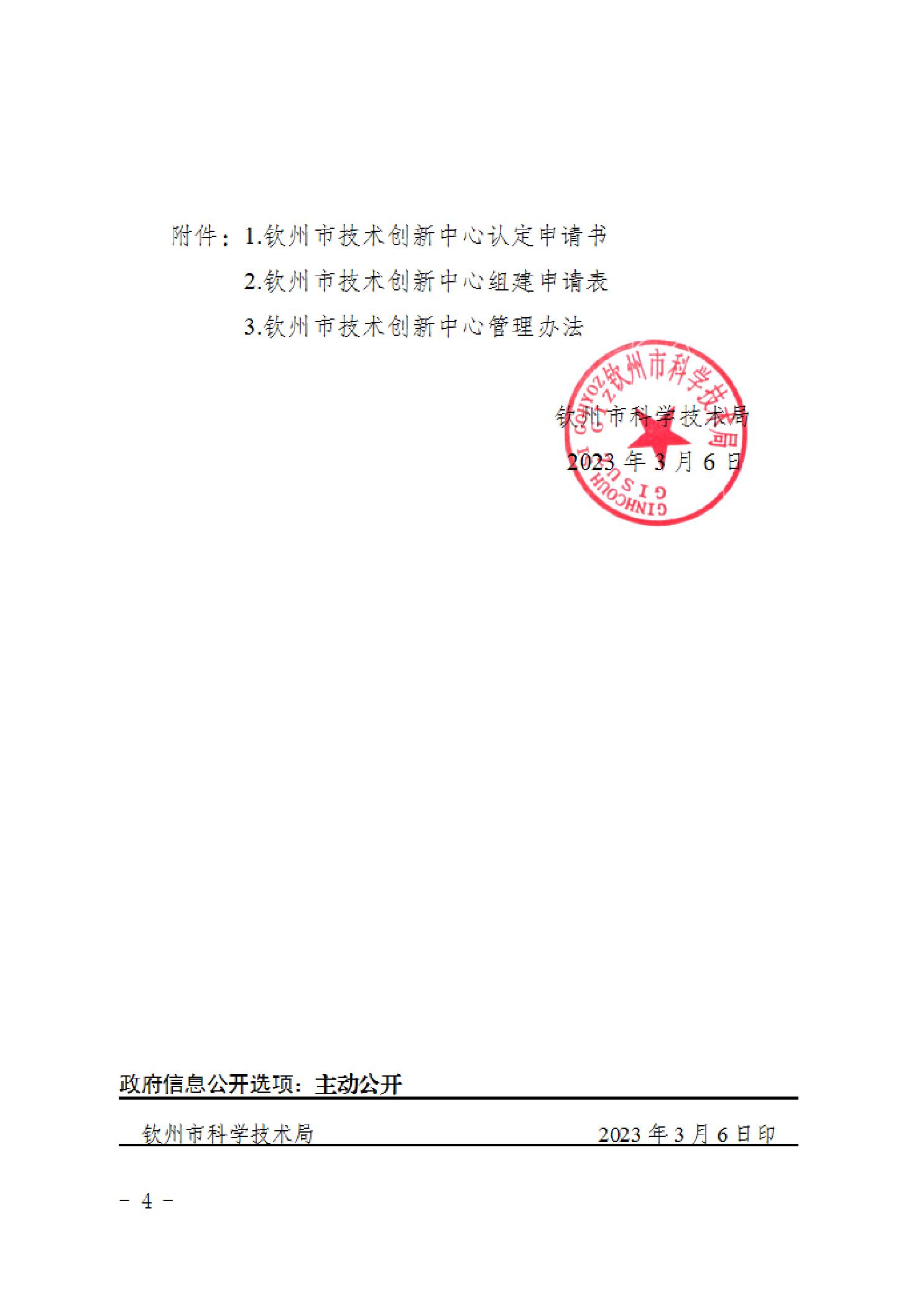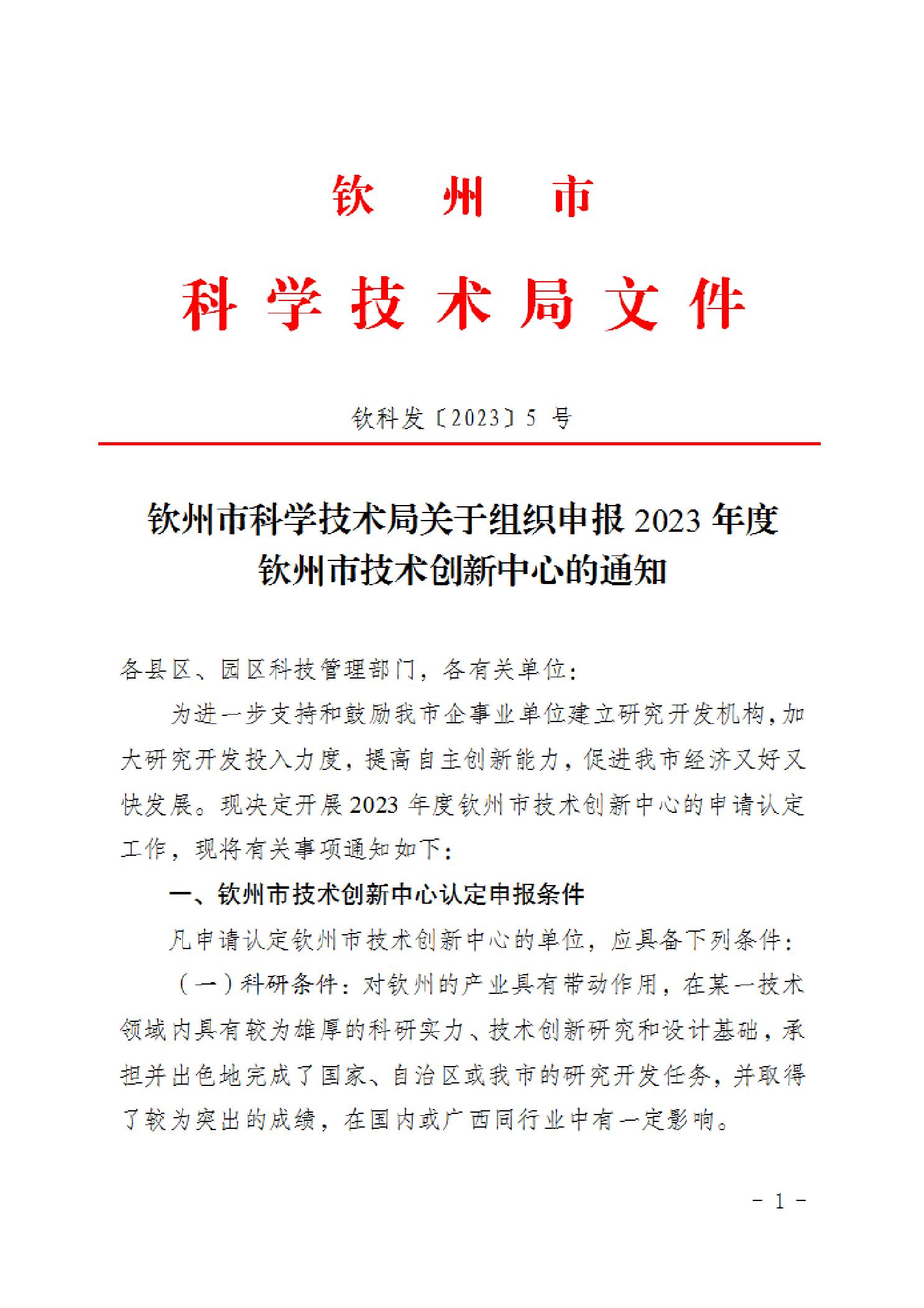 | 标 题:钦州市科学技术局关于组织申报2023年度钦州市技术创新中心的通知 | |