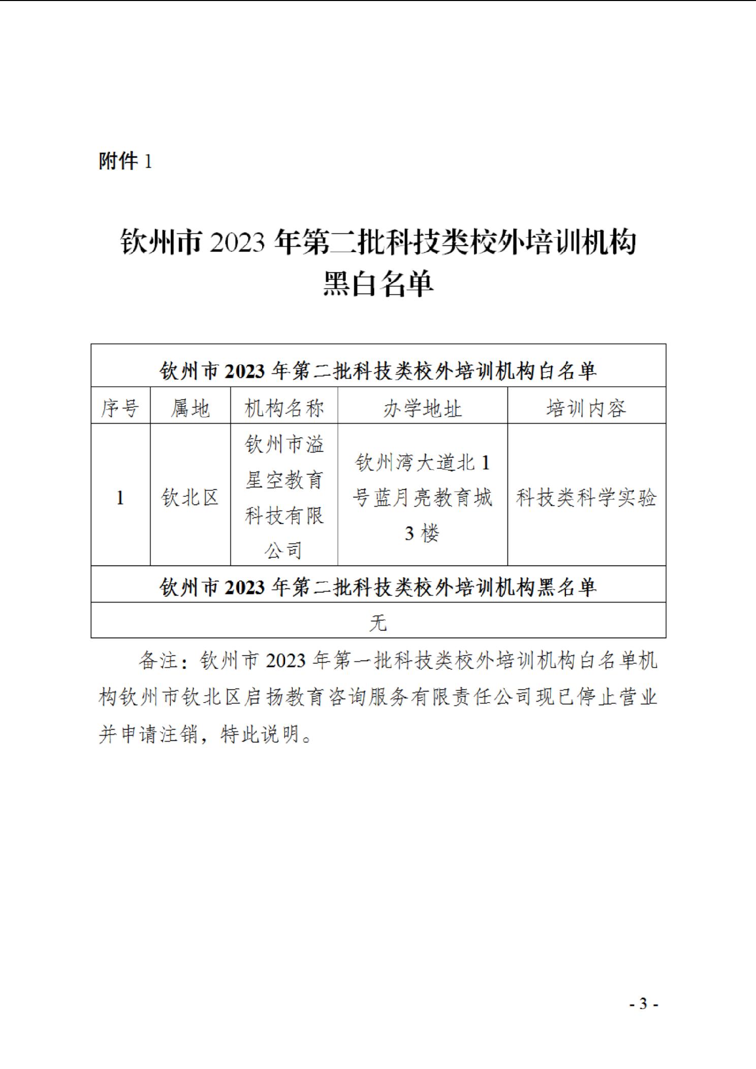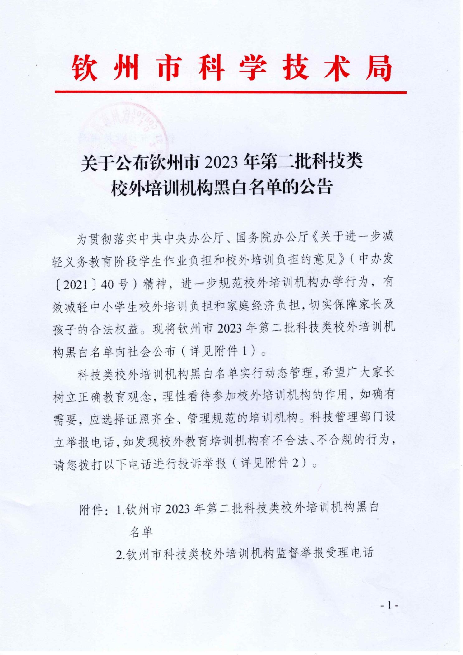 关于公布钦州市2023年第二批科技类校外培训机构黑白名单的公告