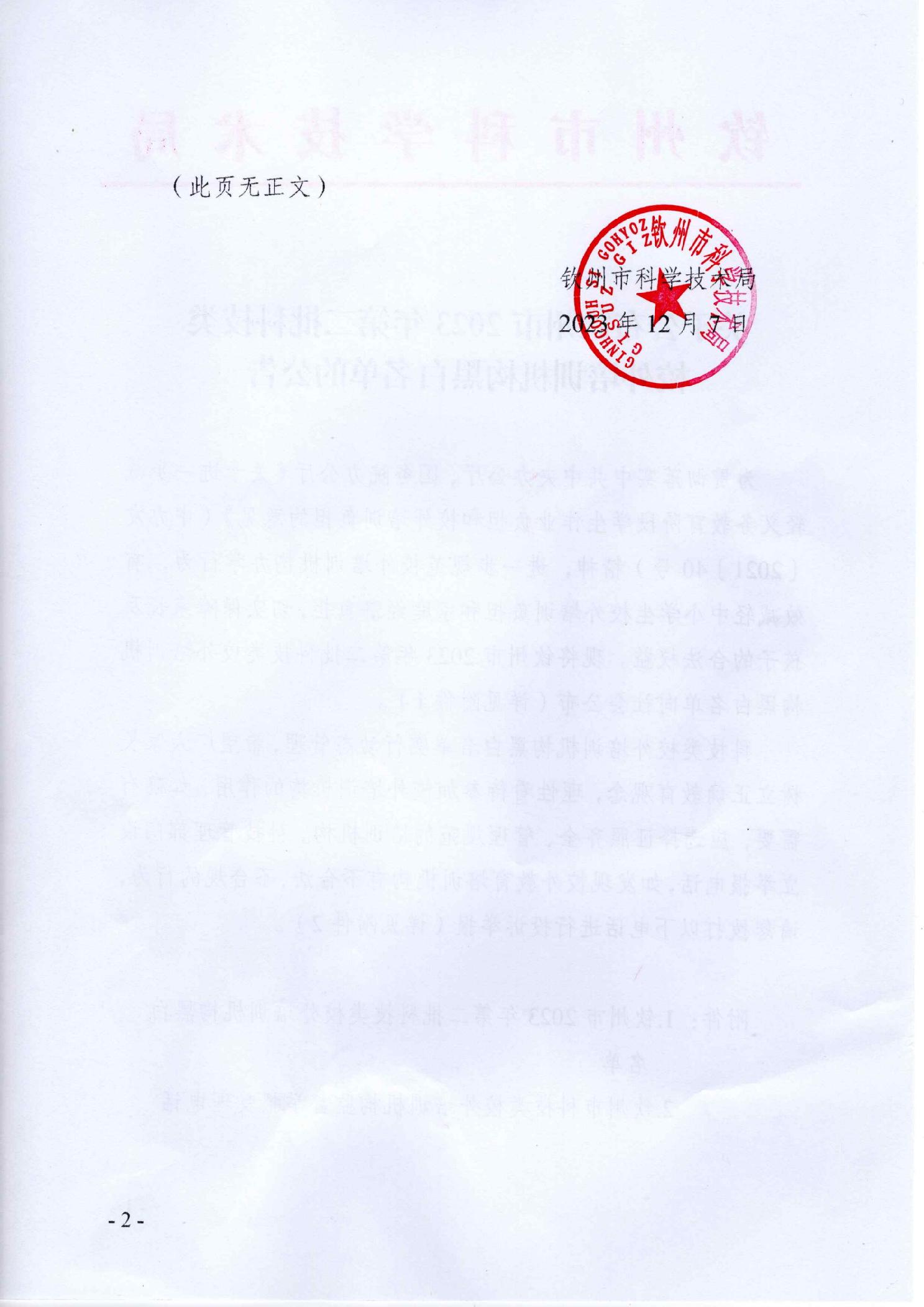 2023-12-07 09:00 来源:钦州市科学技术局 作者:成果转化与对外合作科